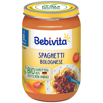 Rajčica* 28%, voda, kuhana tjestenina (durum pšenica*) 19%, mrkva*, goveđe meso* 5%, repičino ulje* 1,6%, jodirana kuhinjska sol, začini (bosiljak*, origano*, papar*), željezov difosfat. *iz ekološke proizvodnje (DE-ÖKO-001) EU/ne EU poljoprivreda. Udio mesa 11 g. Može sadržavati jaja u tragovima.